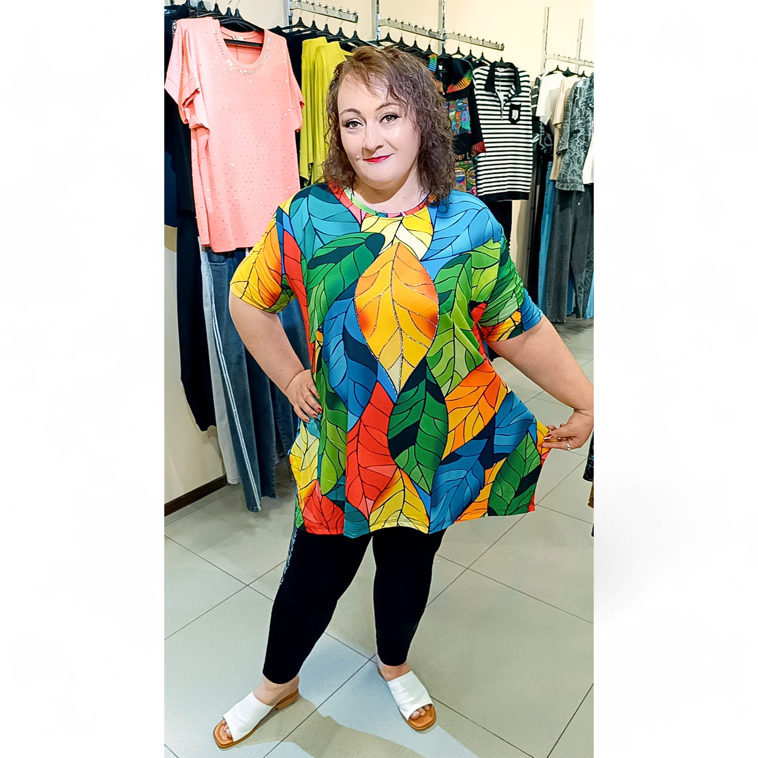 Эта эффектная туника привлечет внимание своими сочными красками и безупречным кроем! Модель создана для женщин, которые не боятся выделяться и ценят комфорт в повседневной жизни. Свободный силуэт мягко скрывает возможные недостатки фигуры, подчеркивая при этом вашу индивидуальность.