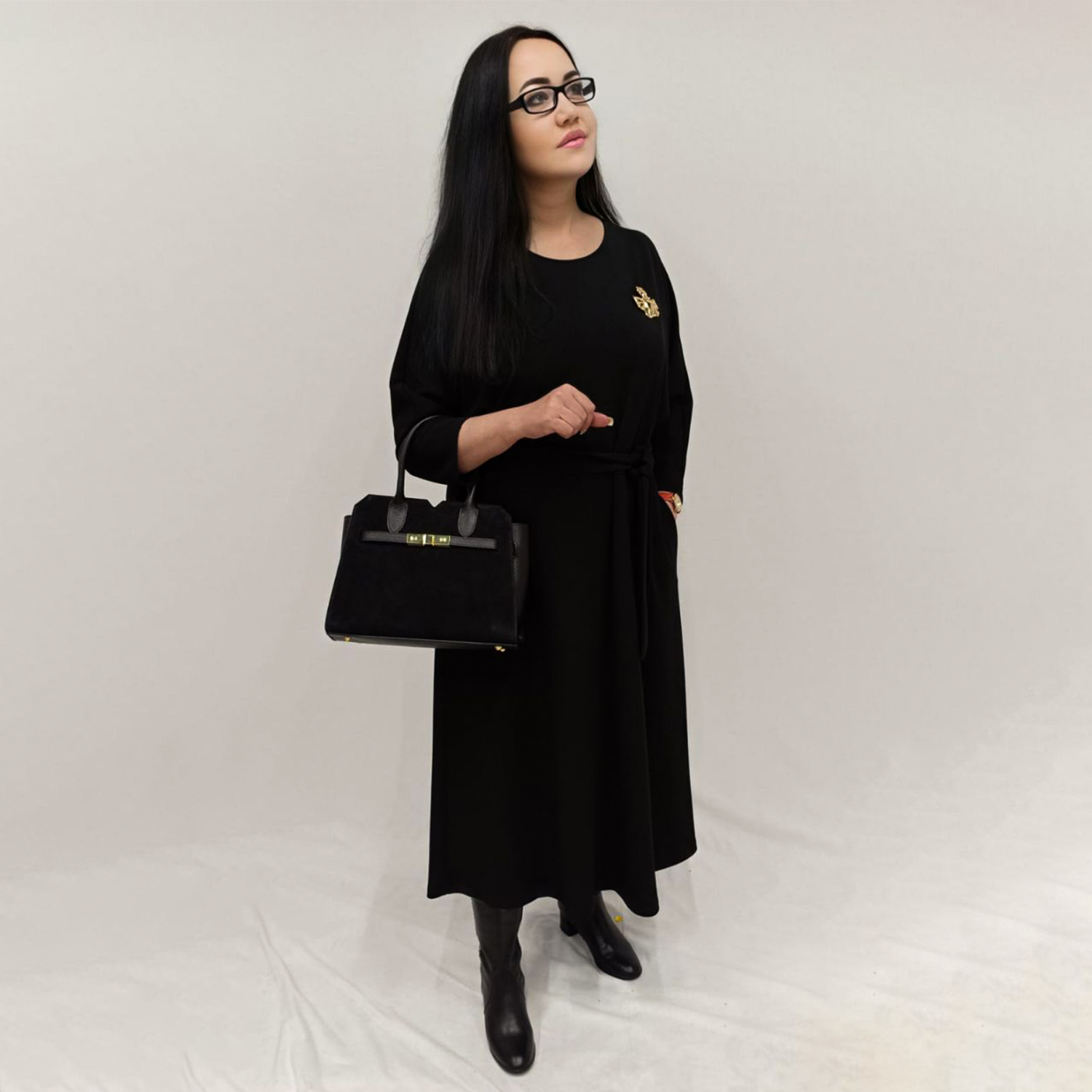 Костюм велюровый женский с цветком, цвет черный. Модель-1049